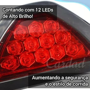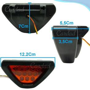 Luz freio carro estrobo led brake light 12 design esportivo Garanta muito mais segurança ao dirigir e ao mesmo tempo, deixe seu carro muito mais moderno e com estilo diferenciado utilizando este brake light universal para luz de freio com 12 leds. Com ele, você aprimora o sistema de sinalização do seu carro melhorando o nível de alerta para os veículos que seguem atrás ao acionar o freio. Com modelo compacto, não interfere na visão traseira e utiliza leds de última geração que emitem luz de alto brilho, consumindo pouca energia. Especificações: Possui utilizar de dois modos. 1º break light ao acionar o freio se mantem acesso.2º estilo formula1 piscando constante, igual strobo. - marca: cinoy- modelo: yn-bl1386- compatibilidade universal- 12 led's de alto brilho- há três fios; condução/strobe modo intermitente pisca-pisca, luz de freioPositivo e negativo- cerca de 90 pisca por minuto- aumentar tanto a segurança rodoviária e estilo de corrida- composição: plástico abs, alumínio, led, cobre, borracha- acionado pelo freio- veiculo muito mais moderno- formato triangular- aumenta a segurança- voltagem: 12v- pouco consumo de energia- emite luz na cor vermelha- à prova d'agua Itens da caixa: - 1 brake light triangular- kit de instalação Marca: Cardad
