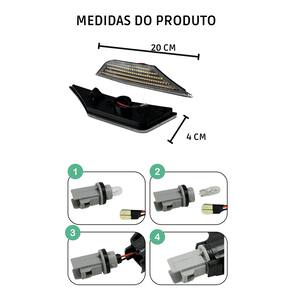 Características: - Material: Plástico ABS e LED; - Tamanho: igual ao autêntico - Cor da lente: Transparente; - Cor do Led âmbar, tom padrão de acionamento. - Quantidade: 2 Unidades; - 100% à prova d'água.