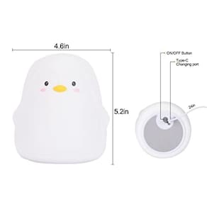 ZKLiLi Luz noturna de pinguim fofo, luzes de pinguim para meninos e meninas, presentes de Natal, decoração de quarto de crianças e adolescentes, lâmpada noturna de animal de silicone - ?Material de silicone seguro? A luz noturna Penguin é feita de silicone macio sem BPA e material ABS. Ecológica, lavável, impermeável e não tem bordas afiadas, contato com superfície macia, inofensivo para o bebê. Nossa linda luz noturna não se deforma após ser espremida. - ?Modo de respiração de 7 cores? Pressione o botão de interruptor inferior da luz noturna infantil para luz branca quente, primeiro toque para o modo de respiração de 7 cores, segundo toque para manter uma determinada cor, terceiro toque para desligar a luz, quarto toque sobre a luz noturna para as crianças reiniciarem o ciclo. - ?Companheiro a noite toda? Nossa luz noturna para quarto infantil Pinguim oferece ao seu bebê companhia a noite toda e ajuda a dissipar o medo da escuridão. A lâmpada do quarto das crianças pode durar doze horas depois de totalmente carregada. - ?Luz noturna portátil? O pequeno tamanho e o peso da nossa luminária de pinguim permitem que seus filhos a levem para qualquer lugar, eles gostam de carregá-la pelo corredor para o quarto ou banheiro à noite. As luzes noturnas para quartos das crianças são fáceis de segurar para seus filhos. - ?Presentes perfeitos? É adequado para enviar crianças como presente de aniversário e acreditamos que seu bebê vai gostar muito para um visual tão doce. O melhor presente de pinguim para crianças.