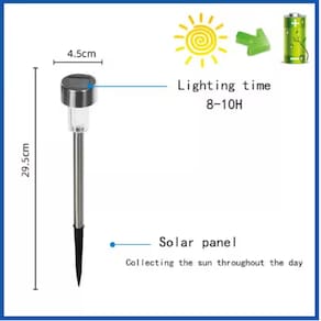 ILUMINAÇÃO SOLAR MODERNA E SUSTENTÁVEL PARA SEU JARDIMTransforme seus espaços externos com estilo, economia e praticidade! As Luminárias Solares de Aço Inox são a solução ideal para iluminar e decorar jardins, calçadas, decks, piscinas e áreas externas de forma eficiente e sustentável. Com um design elegante e instalação simples, elas proporcionam um efeito visual sofisticado sem custo adicional de energia elétrica.PRINCIPAIS BENEFÍCIOS:Sustentabilidade e Economia: Alimentação 100% solar, sem consumo de energia elétrica.Instalação Descomplicada: Sem necessidade de fios, basta fixá-las no solo através da estaca embutida.Acendimento Automático: Sensor fotossensível que liga ao anoitecer e desliga ao amanhecer.Autonomia de Até 8 Horas: Bateria recarregável integrada, garantindo longa duração após um dia de sol.Iluminação em LED: Tecnologia LED de alto brilho, maior durabilidade e menor impacto ambiental.Resistência e Durabilidade: Corpo em aço inoxidável, resistente às condições climáticas externas.ESPECIFICAÇÕES TÉCNICAS:Dimensões: 29,5 cm x 4,5 cm x 4,7 cmPeso: 70g (cada unidade)Tipo: Luminária solar para ambientes externosPotência do LED: 0,07WAutonomia: Até 8 horas por noite após carga completaBateria: 2/3 AA Ni-Mh 1,2V 150mAh recarregávelCor da Luz: Branco frio (prateado)Material: Aço inoxidável resistenteUso Indicado: Jardins, piscinas, quintais, calçadas e caminhosINSTRUÇÕES DE USO:Instale as luminárias em locais expostos diretamente ao sol para máxima eficiência de carga.O sensor fotossensível acenderá automaticamente a luz ao anoitecer e apagará ao amanhecer.Não utilize em áreas com iluminação intensa à noite, pois pode interferir no funcionamento do sensor.ATENÇÃO: Este produto é indicado para sinalização e decoração de ambientes externos, não sendo adequado para iluminação principal de grandes áreas.?? Beleza, qualidade e eficiência ao seu alcance. Ilumine seu jardim de forma moderna e sustentável! obs vídeo ilustrativo Marca: FAÇA E RESOLVA