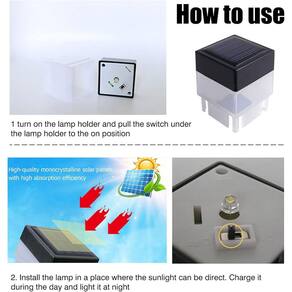Melhore a aparência e a segurança de suas áreas externas com esta tampa de poste de cerca de LED solar. Estas luzes são perfeitas para iluminar cercas, decks, caminhos e jardins. As luzes LED de eficiência energética são alimentadas por painéis solares, que carregam durante o dia e fornecem até 8 horas de iluminação à noite. A construção robusta e os materiais resistentes às intempéries tornam essas luzes uma adição durável e confiável à sua decoração externa. O sensor liga/desliga automático garante que suas luzes acendam ao anoitecer e se desliguem ao amanhecer, para que você não precise se preocupar com a falta de energia. Basta montá-los em seus postes de cerca e aproveitar o ambiente que eles criam. Escolha esta tampa de poste de cerca de LED solar para uma solução de iluminação elegante e prática para seus espaços ao ar livre. - Luzes alimentadas por energia solar: alimentadas por energia solar, carregadas em luz solar total e direta por 6 a 8 horas, as luzes ligam automaticamente ao anoitecer e desligam ao amanhecer. Há uma aba na tampa da luz, remova-a antes de carregar. Cada luz inclui 1 bateria recarregável AA NI-MH; a bateria tem capacidade suficiente para brilhar a noite toda. - Sensor automático ativado ao pôr do sol e desligar ao nascer do sol. - Dimensões de cada tampa: 5 cm x 5 cm x 7 cm. - Resistência ao clima: a luz solar externa é feita de plástico espesso de alta qualidade, não precisa se preocupar com ferrugem. Adequado para uso ao ar livre, a luz pode funcionar normalmente em todos os tipos de clima, grau impermeável IP44, à prova de intempéries, não se preocupe com chuva, neve, geada, granizo - Fácil de instalar. Sem necessidade de fiação.