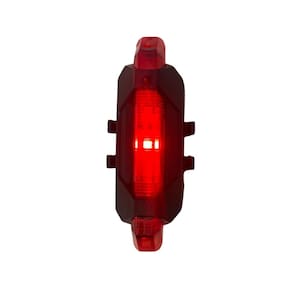 Itens inclusos: 1 lanterna sinalizadora, 1 cabo usb, 1 presilha de silicone pequena e 1 presilha de silicone grande.