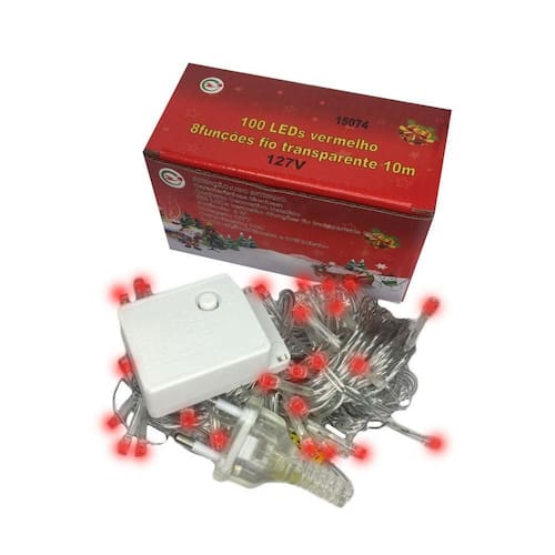 Luzes 100 leds vermelho 8 funções 127v 10 metros natal comprimento: 10 metros cor: led vermelho potência: 4w voltagem: 127v fio transparente 8 funções diferentes para o pisca atenção: imagem meramente ilustrativa. Não acompanha acessórios. Pode ocorrer mudanças no tom da cor para o produto real ou mudanças na embalagem sem aviso prévio por parte do fornecedor/fabricante.