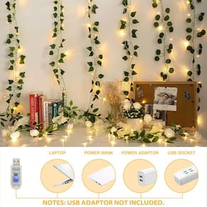 [IMPERMEÁVEL/SEGURANÇA IP44] O grau de impermeabilidade IP44 é uma proteção adequada contra chuva e neve, o que não afeta as luzes externas da cachoeira de Natal. (Observe que o USB não é à prova d'água.) As luzes de fada e o USB sempre manterão uma temperatura baixa. É 100% seguro tocá-los.