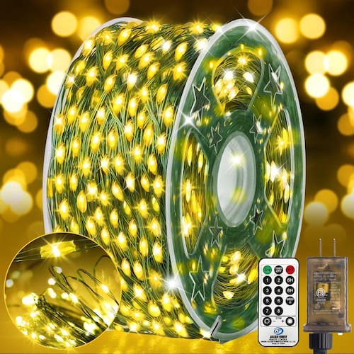 KNONEW Luzes de fio de cobre branco quente - 600 luzes de LED de fada: contas de lâmpada atualizadas de 2024, 600 LEDs de fio de cobre verde super longo, luz de fio de cobre verde super longa, IP44 à prova d'água, 8 modos de iluminação, listado na UL. Luzes de fadas muito adequadas para decorar Natal, casamento, Ação de Graças - 8 modos de iluminação e nível de brilho: 25%, 50%, 75%, 100% 4 níveis de brilho ajustados, você pode escolher o modo desejado de acordo com diferentes cenas e festivais (1. Combinação, 2. Em ondas, 3. Sequencial, 4. Slo-glo, 5. Perseguição/flash, 6. Desvanecimento lento, 7. flash, 8. Estável). - Uso interno e utdoor: IP44 à prova d'água pode ser utilizado normalmente em chuva forte. Estas luzes são perfeitas para luzes noturnas de quarto, simulando um topo de céu estrelado, que pode ser facilmente enrolado em móveis, tampos de cama, paredes, tetos, corredores, árvores, pátios e adicionar uma atmosfera acolhedora à sua casa. - Configuração do temporizador e função de memória: chip de memória embutido, não precisa mais ligá-lo e desligá-lo manualmente todos os dias, economize seu precioso tempo. E 3 modos de configuração de temporizador podem personalizar seu tempo por controle remoto. 6 horas ligado, 18 horas desligado; 8 horas ligado, 16 horas desligado; 6 horas ligado, 6 horas desligado, 3 horas ligado, 9 horas desligado. - Plugue certificado UL: o plugue de baixa tensão listado pela UL é seguro ao toque, muito amigável para crianças e animais de estimação. O transformador pode ajustar o modo de iluminação (estável ligado e 7 modos de iluminação flash), também pode alternar a função de temporizador (6 horas ligado, 18 horas desligado).