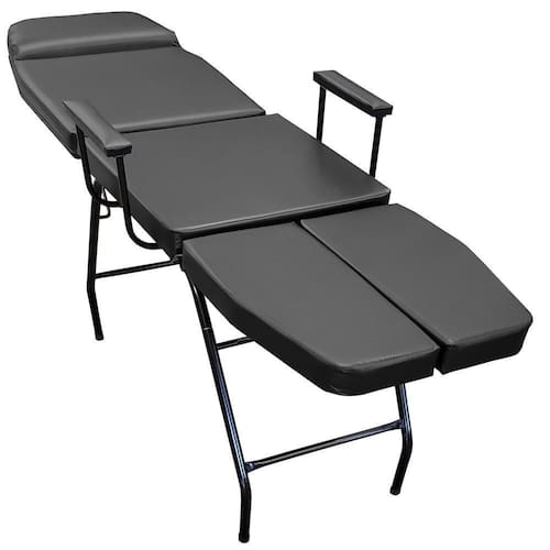 Maca 3 Posições Bi-Perna Preta Com Apoio De Braço Informações do produto: Categoria: estética Dimensões: 74 alt.X 54 larg.X 178 comp. Cm Reclíneo: possui 5 regulagens no encosto e 5 regulagens nos pés, ficando totalmente deitada na horizontal e também mais sentada que na foto. Cor: preta Braços facilmente removíveis (eles são apenas encaixados) Modelo desmontável Marca: for-ty