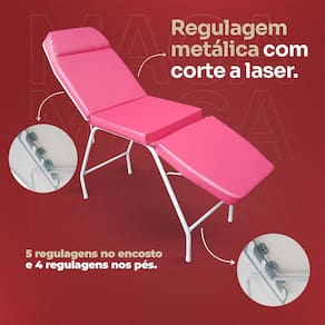 Conforto superior: estofado macio e suporte ergonômico para longas sessões. Espuma densidade d 28 com 5 cm de espessura Durabilidade: construída com materiais de alta resistência para garantir uma longa vida útil. Praticidade: por conta das suas regulagens proporciona várias posições para atender os mais diversos tipos de procedimentos. Possui regulagens de aço galvanizado com corte a laser, sendo 5 níveis de regulagens no encosto e 4 níveis de regulagens nos pés. Estilo moderno: design elegante que complementa qualquer ambiente de trabalho. Peso suportado: até 160 kg distribuídos.