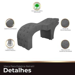 Maca Capitone Reclinável Estofada Para Estetica Facial Sombrancelha E Cílios Suede Yasmim Cor Cinza Chumbo