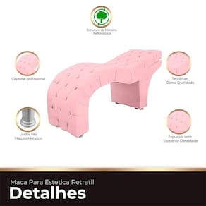 Maca Capitone Reclinável Estofada Para Estetica Facial Sombrancelha E Cílios Suede Yasmim Cor Rosa Bebe