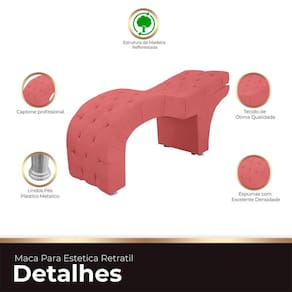 Maca Capitone Reclinável Estofada Para Estetica Facial Sombrancelha E Cílios Suede Yasmim Cor Rose