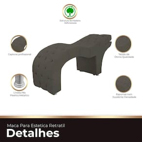 DIMENSÕES DA MACA Largura total:190cm; Profundidade total: 65cm; Altura fechado:0,90cm; Altura do encosto aberto:115cm; Peso suportado: 145kg. Peso:32kg;A GARANTIA É DE