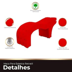 Maca Estofada Capitone Reclinável Julia Para Estetica Facial Sombrancelha E Cílios Suede Cor Vermelho