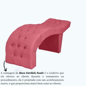 - Tecido Suede e detalhe em Capitonê, levando um toque de luxo à maca.