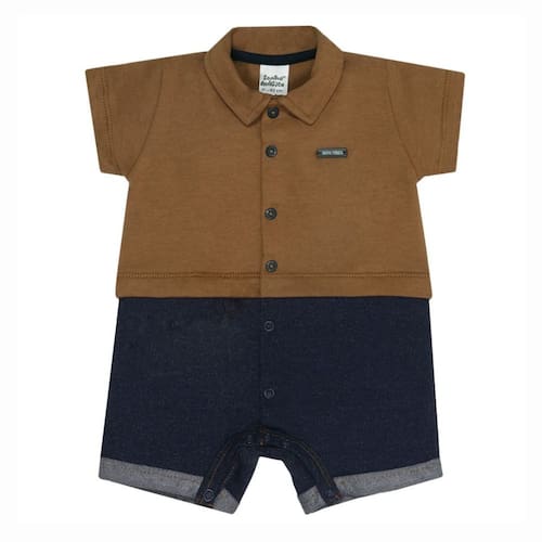 Macacão Bebê Menino Curto Nozes Caramelo / Marinho - Sonho Mágico Sonho Mágico: Conforto e Estilo para o Seu Bebê!