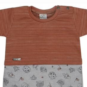 Macacão Bebê Menino Curto Moletinho Terracota / Cinza Astronauta - Sonho Mágico: Conforto e Estilo para o Seu Bebê!