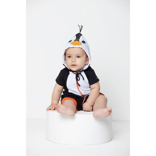 Lindo, confortável e super divertido, macaquinho bebê animais curto com ziper e capuz e detalhes do rosto em bordado, 100% algodão.