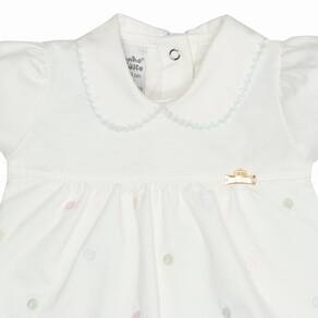 100% Algodão: Maciez e conforto incomparáveis. Super Confortável e Maleável: Perfeita para brincadeiras e momentos de descanso. Praticidade: Possui botões na parte inferior e nas costas para facilitar a troca de fraldas e o vestir. Estilo: Uma peça linda e delicada, com bordado de bolinhas coloridas, que deixarão sua bebê ainda mais estilosa.