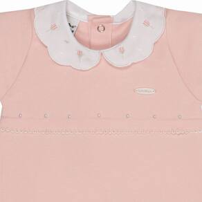 100% Algodão: Maciez e conforto incomparáveis. Super Confortável e Maleável: Perfeita para brincadeiras e momentos de descanso. Praticidade: Possui botões na parte inferior e nas costas para facilitar a troca de fraldas e o vestir. Estilo: Uma peça linda e delicada, com bordado na gola e pérolas na parte frontal, que deixarão sua bebê ainda mais estilosa.