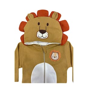 O Macacão Bebê Menino Leão Marrom - Brotinhos é composto por suedine marrom e off white em todo o corpinho. Além disso, possui zíper na parte frontal que facilita a colocação e bordado de ursinho no peitoral e na touca. O grande diferencial se encontra na touca, onde possui aplicação de orelhinhas e da juba do leão, proporcionando muita fofura!