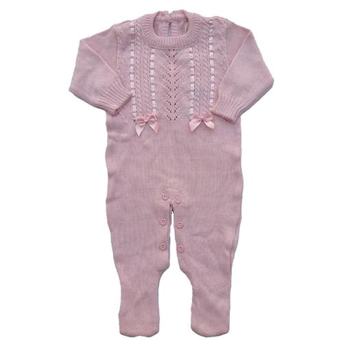 Macacão de Tricô Ísis Tranças Fitas e Laços Rosa Claro - Único - Rosa