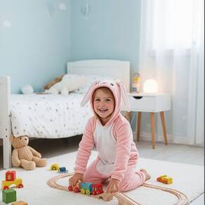 Macacão infantil em fleece plush, ideal para manter a criança aquecida e confortável. Possui capuz com detalhe de coelho, toque macio e acabamento delicado. Modelo prático, confortável e perfeito para uso em dias frios, momentos de descanso ou fantasias temáticas. O fechamento facilita o vestir e garante maior conforto durante o uso.