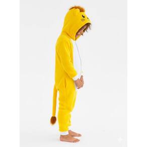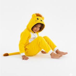 Macacão Infantil De Leão Em Fleece Plush Com Capuz Festa, ideal para manter conforto e aconchego. Possui capuz com detalhe de leão, fechamento frontal prático e modelagem confortável que facilita os movimentos. Indicada para brincar, dormir ou usar em datas temáticas.