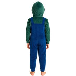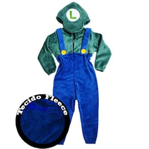 Com design inspirado no famoso personagem Luigi, este macacão traz uma combinação clássica e vibrante de cores azul e verde, detalhes como suspensórios decorativos com botões amarelos e o icônico boné estilizado em formato de capuz com o símbolo "L", tornando-o ideal para festas temáticas, fantasia ou mesmo para um pijama super estiloso e confortável.