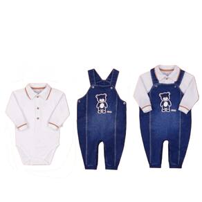 Características do Produto: - Macacão jardineira em jeans super macio e confortável. Detalhe em lavação estonada. Na frente com bordado de ursinho e plaquinha da marca aplicada que dão um charme especial a peça. Fechamento das alças por botões de pressão na frente e abertura lateral. Na parte inferior abertura por botões de pressão entre pernas, facilitando a vestimenta. Simplesmente um encanto! - Body em manga longa em malha 100% algodão, super macio e confortável. Detalhe ribanado nos punhos e na gola. Abertura por botões de madeira na frente até o meio e no fundo por botões de pressão.