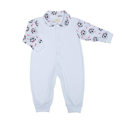 Macacão Longo de Bebê Panda Branco Malha - P - Branco