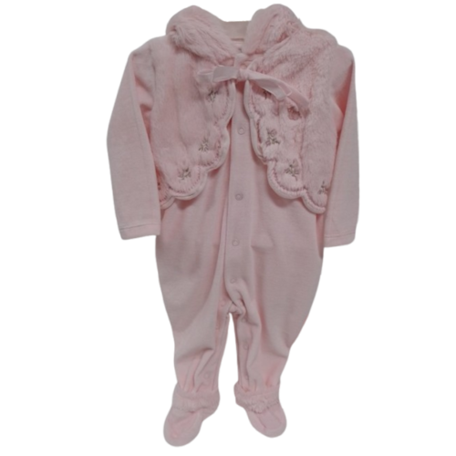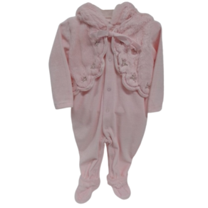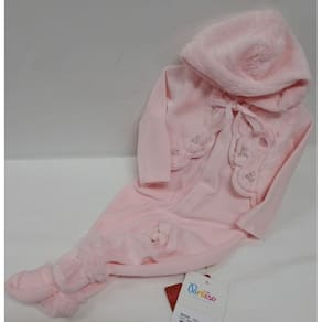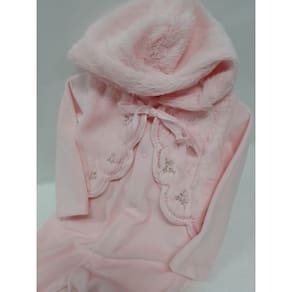 Macacão Longo Plush Bebê Menina Capuz Finta Colete Paraiso