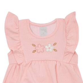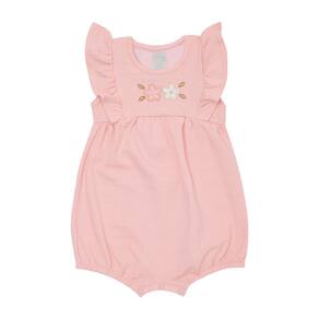 A opção fresquinha e fofinha para as pequenas aventureiras, o macacão possuí aplique bordado de flores no centro da peça, confeccionado em tecido cotton leve na cor rosê. Toque fresco e macio, ideal para o conforta da sua bebê neste verão.\n