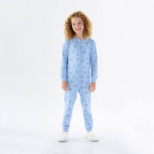 A hora do soninho com muito estilo e conforto! Com abertura em zíper frontal o macacão de manga longa rotativo de corações na cor hortênsia é confeccionado em moletinho, permitindo que a noite da sua fofurinha se torne ainda mais aconchegante e quentinha. Partiu uma pipoquinha antes de dormir?! \n