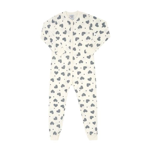 A hora do soninho com muito estilo e conforto! Com abertura em zíper frontal o macacão de manga longa rotativo de corações na cor off white é confeccionado em moletinho, permitindo que a noite da sua garotinha se torne ainda mais aconchegante e quentinha. Partiu uma pipoquinha antes de dormir?! \n