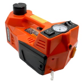 Macaco elétrico hidráulico 4 em 1 12V (Macaco compressor lanterna chave de impacto) Tensão de entrada DC 12V.Potência 150W.Corrente nominal 13A.Fusível 15A.Comprimento do cabo de alimentação 3.5m.Peso máximo do carro de carregamento 3.0T / 5.0T.Faixa de altura de elevação 115-310mm 135-360mm e 155-450mm.Temperatura de trabalho -15-50 ° C.Compressor de ar.Tensão de entrada DC 12V.Velocidade de inflação 65L / minCorrente máxima 10ª;Pressão 10BAR / 150PSI;Comprimento da mangueira 600mm.Chave elétrica de impactoVoltagem DC 12V;Corrente máxima 12A;Potência 100W;Torque máximo 340N.M;Peso 1.9 Kg;