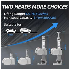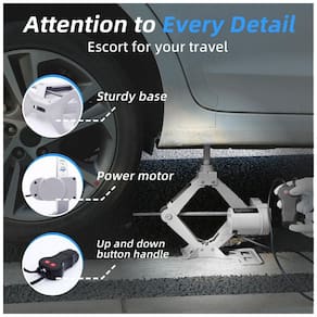 Este macaco elétrico possui uma construção estável com base triangular ampliada, haste de parafuso reforçada e aço laminado a frio, proporcionando estabilidade, capacidade de carga e prevenindo torções. Com design de autotravamento, paradas automáticas na altura máxima, disjuntores embutidos e fusíveis substituíveis, garante uma elevação segura e confiável. Com capacidade de elevação de 3 toneladas, motores duplos embutidos e altura máxima de 42 centímetros em aproximadamente 60 segundos, facilita o levantamento de veículos de até 3 toneladas. Economize tempo e esforço com o controle remoto, sem esforço manual. Adeus levantamento manual, olá trocas de pneus mais rápidas e fáceis. Com luzes LED brilhantes, design à prova d'água e potência de elevação, essa macaco de carro torna as trocas de pneus seguras e visíveis, mesmo no escuro ou em condições chuvosas.