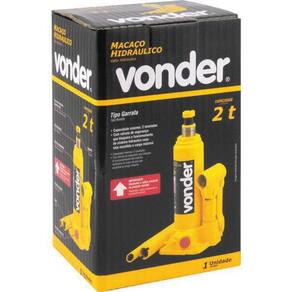 MACACO GARRAFA 2 TONELADAS VONDER 6874020000 Conteúdo da Embalagem:1 Macaco hidráulico tipo garrafa com 1 cabo de acionamento Indicado para elevação de veículos ou cargas de acordo com sua capacidade. Usar, armazenar e transportar somente na posição vertical para evitar vazamento de óleo. Quantidade total de óleo hidráulico: 80 ml Possui válvula de segurança para evitar elevação superior à sua capacidade, cabo dividido em 2 partes que facilita seu armazenamento e fuso de elevação com rosca que proporciona maior elevação e facilita o ajuste no momento da aplicaçãoFicha técnica- Formato do macaco: GarrafaMedidas aproximadas do produto- Comprimento: 16 cm- Altura: 20 cm- Largura: 16 cm- Peso: 3000 g