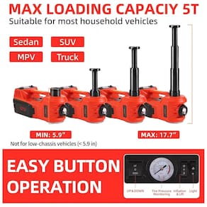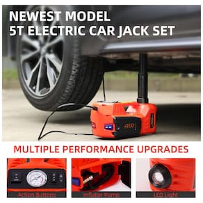 Macaco Hidráulico Elétrico ROGTZ 5 Toneladas 12V Portátil Alcance de Elevação 45 Centímetros com Chave de Impacto e Bomba Infladora de Pneus