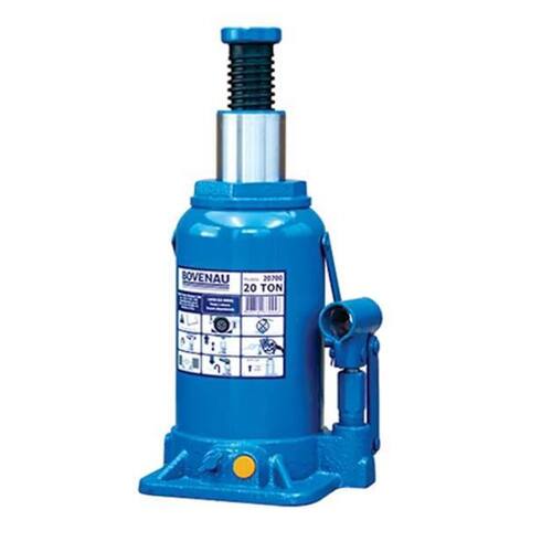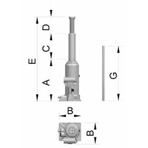 Macaco Hidráulico Garrafa 20 Ton Bovenau - Alavanca inclusa - Ideal para elevação de veículos ou cargas de acordo com sua capacidade - Possui válvula de sobrecarga que evita a elevação superior a capacidade máxima - Possui fuso com rosca que permite maior elevação e facilita o ajuste na elevação - Recomenda-se usar, armazenar e transportar somente na posição vertical para evitar vazamento de óleo - Capacidade de carga: 20 Ton - A: Capacidade de construção: 244 mm; - B: Dimensões da base: 155x169 mm; - C: Curso de elevação hidráulica: 145 mm; - D: Curso de fuso: 60 mm; - E: Altura total: 449 mm; - F: Diâmentro da cabeça de apoio: 46mm; - G: Comprimento da alavanca: 420 mm - Peso com alavanca : 11 Kg Ean: 7898142330948