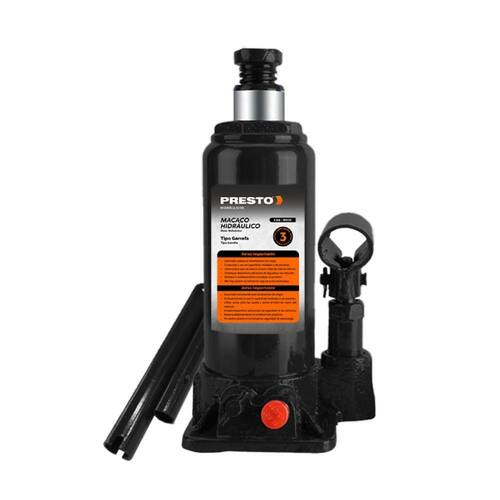Conteúdo da embalagem: 1 Macaco Hidráulico Garrafa 3 Toneladas Presto