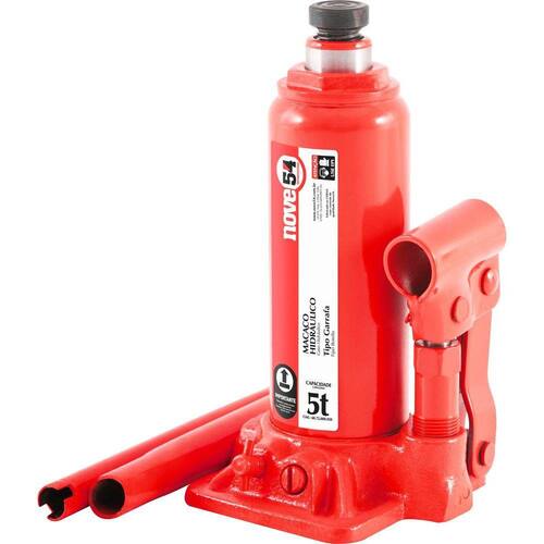 Capacidade de carga do macaco hidráulico tipo garrafa: 5 toneladas Possui alça para movimentação: Não Altura mínima do macaco hidráulico tipo garrafa: 195,0 mm Curso do pistão do macaco hidráulico tipo garrafa: 125,0 mm Curso do fuso do macaco hidráulico tipo garrafa: 60 mm Altura máxima do macaco hidráulico tipo garrafa: 380,0 mm Diâmetro do fuso do macaco hidráulico tipo garrafa: 25,0 mm Prazo de garantia: 6 meses