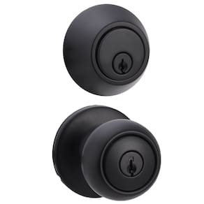 Maçaneta externa Amazon Basics com fechadura e fechadura, costeira, preta fosca
