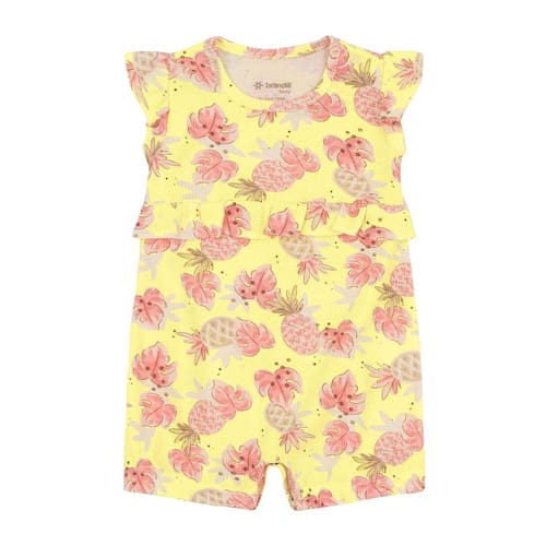 Encante-se com o macaquinho bebê menina da Brandili, confeccionado em ribana suave, perfeito para o conforto da sua pequena. Com uma linda estampa de flores e delicados babados, esse macaquinho possui mangas curtas e gola redonda, ideal para os dias quentes. Invista em looks práticos e cheios de charme para as pequenas exploradoras. Combine com sandálias e um chapéu para um visual adorável e estiloso!