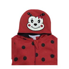 Nosso Macaquinho Bebê Menina Joaninha Vermelho - Brotinhos vai deixar sua princesa ainda mais fofa! A peça foi fabricada em suedine vermelho com bolinhas pretas, simulando uma bela joaninha. Possui zíper em toda parte frontal que facilita na hora da troca. Conta também com bordado de joaninha na touca, além de anteninhas e strass.