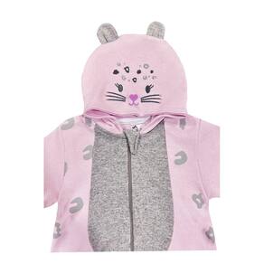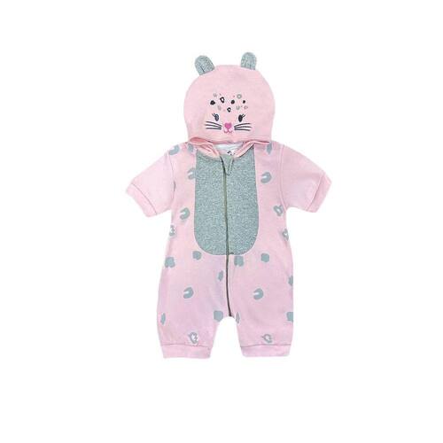 Nosso Macaquinho Bebê Menina Oncinha Rosa Claro - Brotinhos vai deixar sua princesa ainda mais fofa! Fabricado em suedine rosa claro com detalhes em mescla, o macaquinho conta ainda com pintinhas de onça e touca com o rostinho do animal, aplicação de orelhinhas e strass.