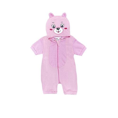 Nosso Macaquinho Bebê Menina Ursinha Rosa Claro - Brotinhos vai deixar sua princesa ainda mais fofa! A peça foi fabricada em suedine rosa claro com detalhes em tecido furadinho rosa. O diferencial da peça é que possui uma touca super linda! Possui o rostinho da ursinha bordado com detalhes em strass. Além disso, conta com zíper em toda parte frontal que facilita na hora da troca.