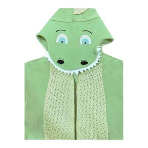 Nosso Macaquinho Bebê Menino Jacaré Verde Claro - Brotinhos vai deixar seu príncipe ainda mais fofo! A peça foi fabricada em suedine verde claro com detalhes em tecido furadinho verde. O diferencial da peça é que possui uma touca super linda! Possui o rostinho de um jacaré bordado com aplicação de dentinhos e spikes desde a cabeça até o final das costas. Além disso, conta com zíper em toda parte frontal que facilita na hora da troca.