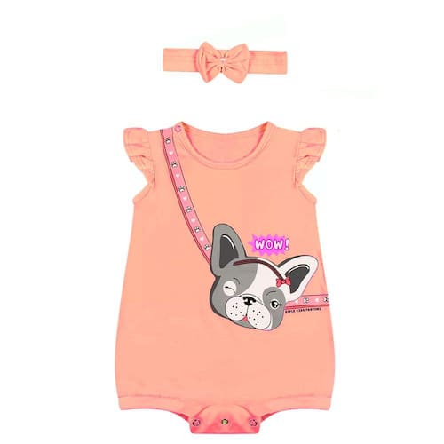 O macaquinho bebê menina é confeccionado em meia malha fio penteado 100% algodão.