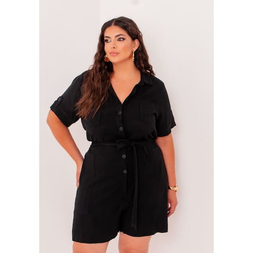 Garanta já o Macaquinho Plus Size com Gola Social e Bolsos e transforme seu guarda-roupa com um toque de elegância e modernidade.Código do Produto: 12399
