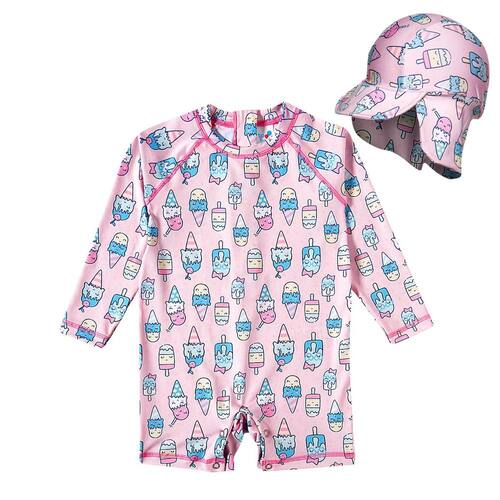 Macaquinho Praia Infantil com Boné Proteção UV 50+ Estampas Tip Top - Rosa - 1