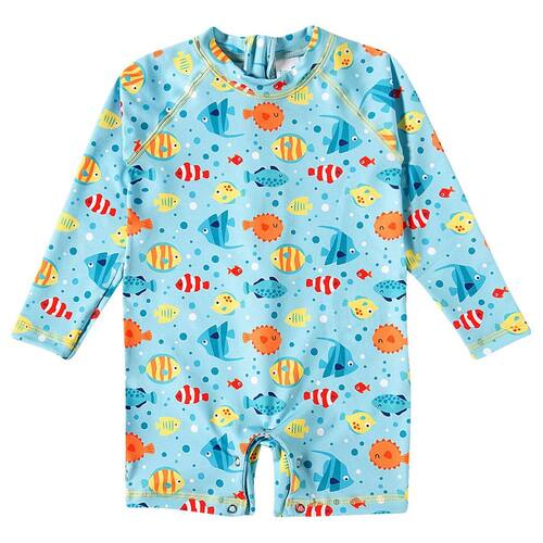Macaquinho Praia Infantil Proteção UV 50+ Peixinhos Azul Tip Top - Azul Claro - 1